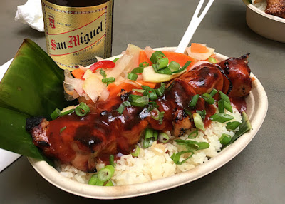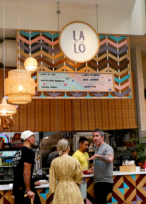 Returning to the Independence Mall area, The Bourse Building, established in 1895 as one of the nation’s first commodity markets, doesn’t stand out necessarily compared to the older structures surrounding it. Walk inside, however, and you’re introduced to a magnificent atrium with a one of the most diverse, locally-based food courts you’ll find for miles around. Despite the multiplicity of choices, we had our mind set on the Filipino-based La Lo, which appeared to our surprise on a Yelp search on nearby places to eat. The menu here at La Lo isn’t large, but it has all the basics and, in our case, prepared quite tastily, with my spouse’s Lechon Kawali paired with a Calamansi Lime Juice or my Bas-Ka-Bob served over rice with a San Miguel Lager.