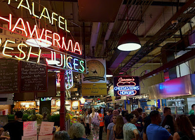 Resisting the power of choice proved impossible at another area food destination. The Reading Terminal Market dates back to 1893 when the Philadelphia and Reading Railroad agreed to house several nearby markets inside their new train terminal when those market merchants refused to depart despite the railroad’s purchase of the block. Generally speaking, as first timers here, we went with the flow of what looked good (Reading Terminal features around 80 vendors), but we had one item specifically in mind in Philly’s lesser known but possibly more tasty sandwich in the Roast Pork with Broccoli Rabe.