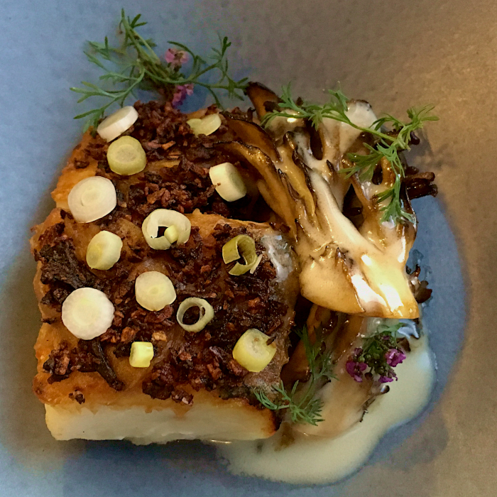 With the next plate, we both laughingly argued which side was more divine – the Striped Sea Bass with a Beurre Blanc or the wonderfully textured Hen of the Woods mushrooms whose taste and texture was enhanced, not overpowered, with soy sauce.