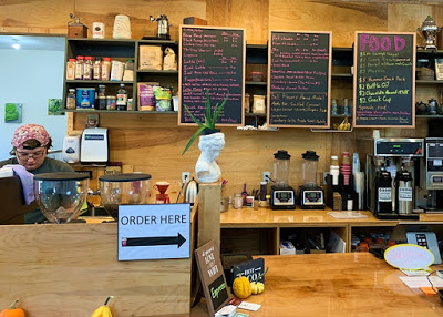 I dove back deep into my own mind and pondered if this couple would feel as comfortable to stop in other coffee places and chat away over a coffee or two? Maybe, maybe not, but I suspect for those who make Community Grounds a regular stop, the coffee beans aren’t greener on the other side or Parsons or any other street. They’re perfectly brewed here, with comfy blue couches and where the giraffe stands guard 24/7.