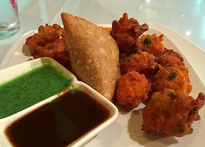 | A collection of appetizers from Samosas to Pakora, with requisite dipping sauces |