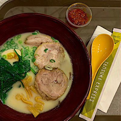 While I have enjoyed all those in the past, perhaps none struck such a comforting note for me than the Tonkatsu Ramen with Chashu Pork I enjoyed but a few days ago. Made spicy (just 50 cents more), this steaming bowl provided the perfect medicine for a garden variety cold I caught while on the West Coast and am now on the positive side of the Bell Curve in terms of recovery.