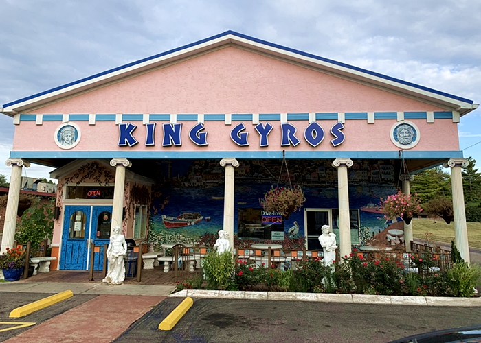 7:40 PM – Headed back up Hamilton just a touch, we circle back to 19) King Gyros Greek Restaurant and its over-the-top but incredibly fun exterior. We decided that one of their massive slices of Baklava is a perfect contrast to the heat-laden dish we got from Indochine just minutes prior.