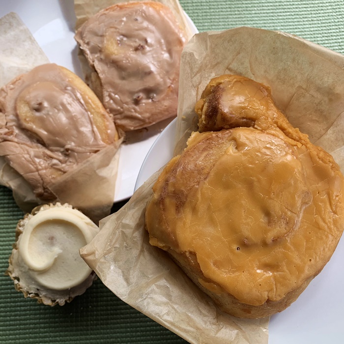 1) Pattycake Bakery Sticky Buns – Vegan bakeries are a great way to ensure egg-free, though I could potentially react to almond and oat milk which are common dairy substitutions. So far, though, I have not noticed an issue, and these sweet buns are delicious. They also do not dry out as quickly as standard ones as we noticed when we had day-old ones.