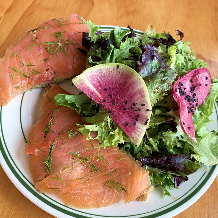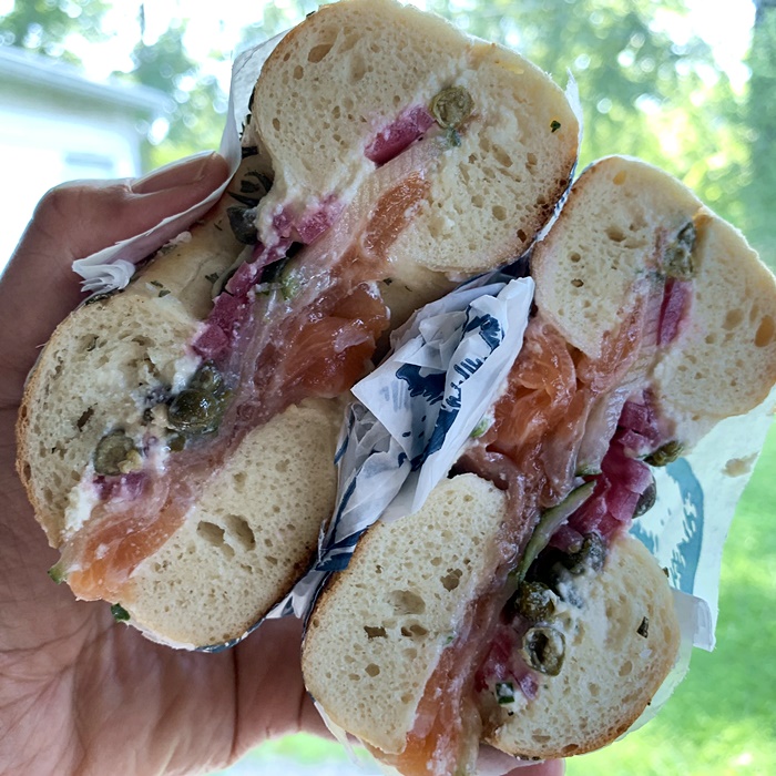 6) The Lox Bagel Shop Lox Sandwich – I love a good bagel and lox, and this sandwich does not disappoint. I usually get it on an everything bagel but the sea salt and herb is equally as good. For those who also need to be dairy-free, I can also confirm that the Woodhouse vegan cream cheese is a delicious option on any bagel.