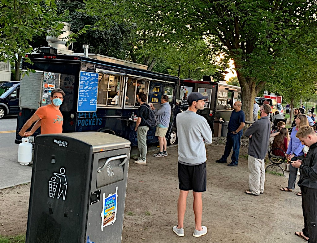 On this beautiful summer day, folks were out picnicking, ordering food from some of the local food trucks, casually strolling along the walkways, or simply hanging out (like we did) on a bench, staring out at the seemingly hundreds of boats anchored in the waters just offshore.