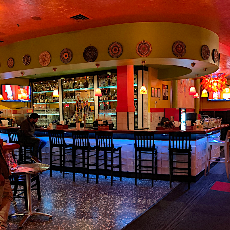 Just a few blocks north, Ramsi’s Cafe On The World is one of those restaurants that in retrospect strikes us as a place where it takes a local to ferret out the gems in its rather substantial world-oriented menu, much of which is vegan and/or vegetarian. The Peanut Ginger Thai Noodles was the most liked of the two dishes, but we have the feeling there’s even better to be had, and the space itself is supposed to be an experience in its own right.