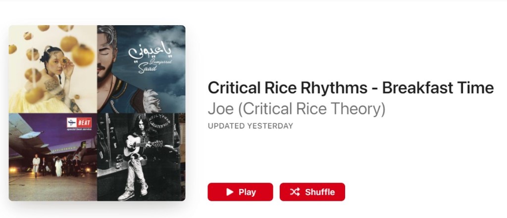 Link to Playlist: https://music.apple.com/us/playlist/critical-rice-rhythms-breakfast-time/pl.u-aZb0NorCBGogL
