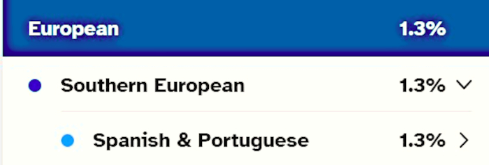 The second surprise was something that, prior to the test, I thought was highly unlikely. Because of the last names, many Filipino and non-Filipino people assume the natives have a large share of Spanish blood in their DNA. But as I learned with the Catálogo, the last names were assigned for government tax payments, not actual family ties to the Spanish. Also, prior to the results, I read a couple sources that stated roughly 2-4% of the country’s population has Spanish lineage, as the Spanish generally did not mingle with the lower-class natives.