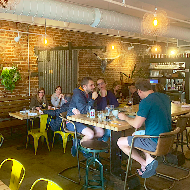 Mean Mug, a mini-chain of local coffee shops, has elements of some of our favorite Columbus spaces, but really this eatery, which opened in 2011, has its own winning formula of their own house roasted coffee drinks and a menu that can accommodate a number of dietary options such as vegan and paleo. The Veggie Grits Bowl balanced a nicely cheesy and very smooth grits and tofu scramble (eggs are also an option) balanced really nicely with crispy kale and other veggies. For me, it was my second favorite dish behind the broccoli at Main Street Meats…