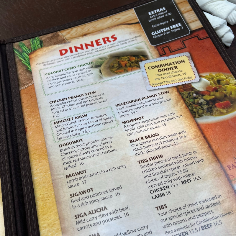 Buraka: Unsurprisingly, towns or cities with a major university generally have a more diverse food selection than their similarly populated brethren. This is true of Madison, and our appetites were duly satisfied with our friend at Buraka, the city’s only Ethiopian restaurant.