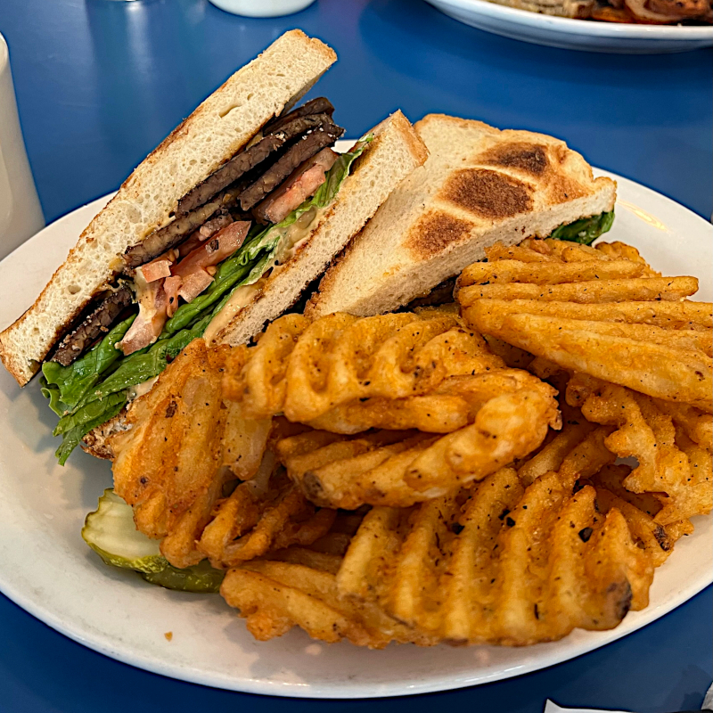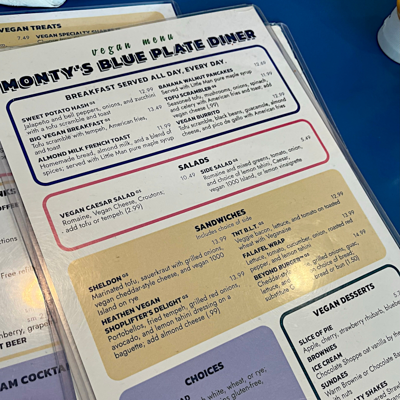 Monty’s Blue Plate Diner – we’ve had our share of memorable diner-style vegan cuisine, from Cambridge’s Veggie Galaxy to Lawrenceville’s B52 Cafe to Columbus places like Seitan’s Realm and 4th and State.