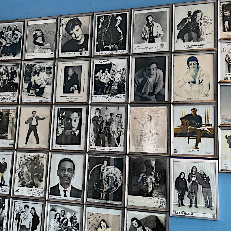The TNT BLT won’t remind you of a real BLT, but was a pretty good sandwich regardless. Even better was my spouse’s funly-named Heathen Vegan Shoplifter’s Delight, which offered portobellos, fried tempeh, red onions, avocado, and lemon tahini dressing on a baguette. Be sure to be on the lookout for some of your favorite entertainers’ photos, who almost certainly made their way from the historic Barrymore Theatre across the street.