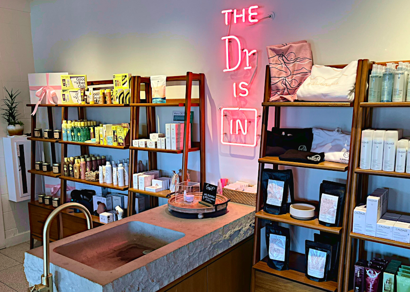 Dr. Wilkinson’s (opened by John “Doc” and Edy Wilkinson in 1952) is often credited with perfecting hot mud bath treatments, which has enhanced the area’s health mecca status for those seeking skin replenishment and stress relief. The property stayed a family-run affair until 2019, when Marriott acquired the property and initiated a two-year-long multimillion dollar renovation on what had become a shopworn facility. Even first-time visitors like us could tell that the property had undergone some recent polishing – much of the exterior had that freshly tiled and painted look, including the small set of bungalows (most of which have amenities like outdoor hammocks, and some unique to the room, such as a Peloton bike) that dotted the rear of the property next to the parking lot. Scattered reminders of the facility’s history can be seen throughout both the exterior and interior spaces of Doc Wilkinson’s in framed pictures and other media.