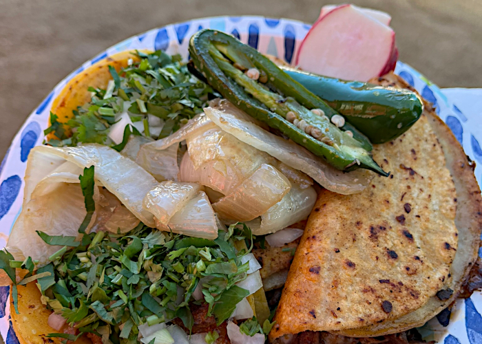 Interestingly, it was the kitchen more than the beer that we were seeking on this visit, but we thought we might have to look for a fourth lunch option when our entrance greeter informed us the kitchen was closed. However, they did have a local taco truck in house, which in California is almost always an acceptable option. While Robert’s Taquizas didn’t have the items we really wanted (Tlayudas and Memelas, pictures of which tempted us from their banner), their tasty Quesabirria Tacos proved to be a more than adequate alternative.