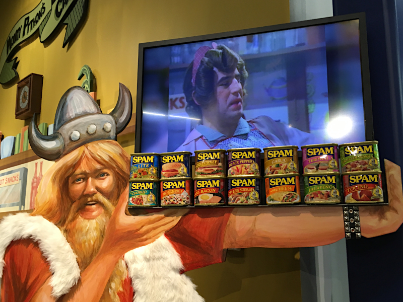 But when it comes to kitsch, the SPAM Museum in Austin, MN, is hard to beat. Trays of the 20 different flavors of SPAM as hors d’oeuvres, a kiosk where you can create your own SPAM Jeepney or send yourself a SPAM recipe, various displays how various countries feature SPAM (did you know South Korea has gift sets for this luncheon meat?), the requisite company history displays, and a section dedicated to Monty Python’s mocking tribute to this product, this museum has it all and more.