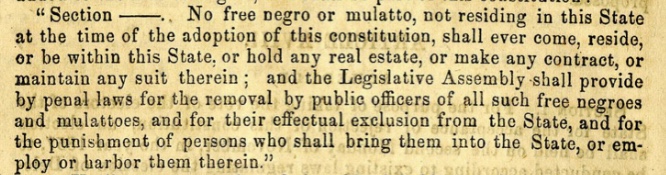 One section of the Oregon State Constitution prohibiting any “free negro or mulatto” from moving to the state